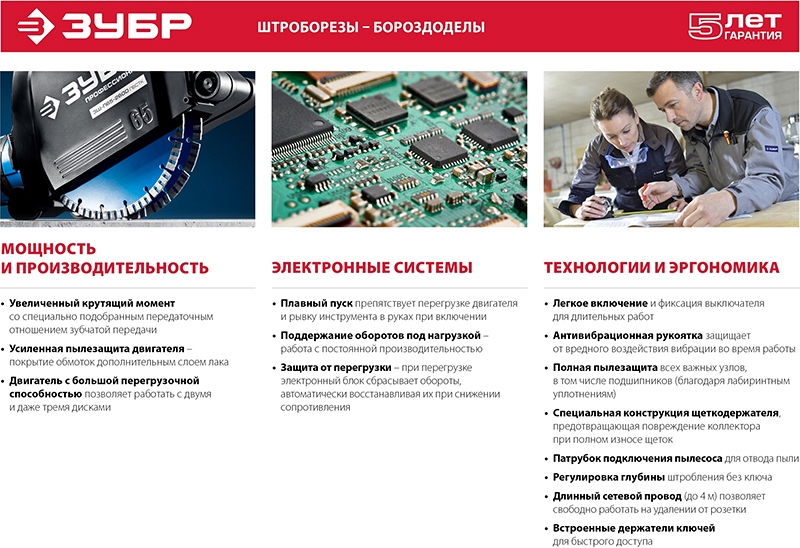 – На электроинструменты и бензотехнику ЗУБР действует расширенная 5-летняя гарантия