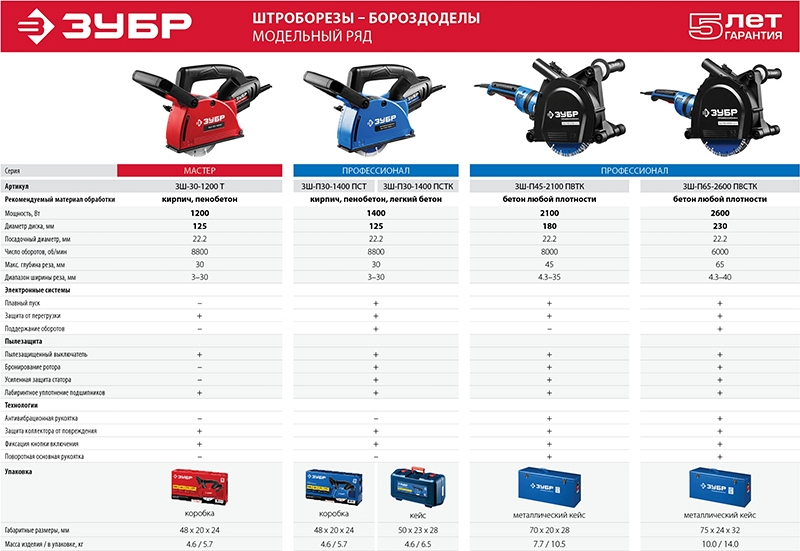 Преимущества штробореза Зубр Мастер ЗШ-30-1200 Т: