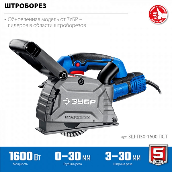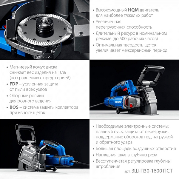 Преимущества штробореза Зубр Профессионал ЗШ-П30-1600 ПСТ: